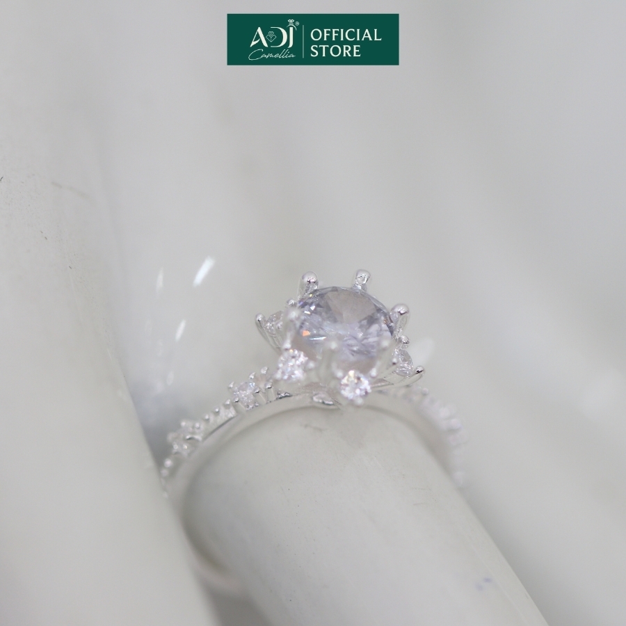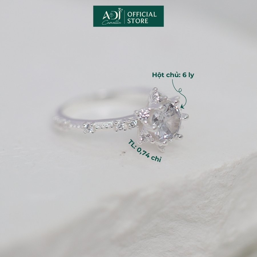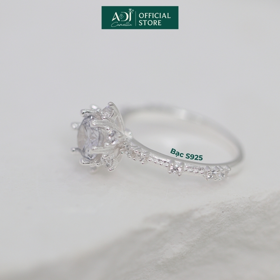 Nhẫn Bạc Nữ ADJ 6 Cánh Nhọn Viên Chủ To Viền Nạm Đá Lấp Lánh