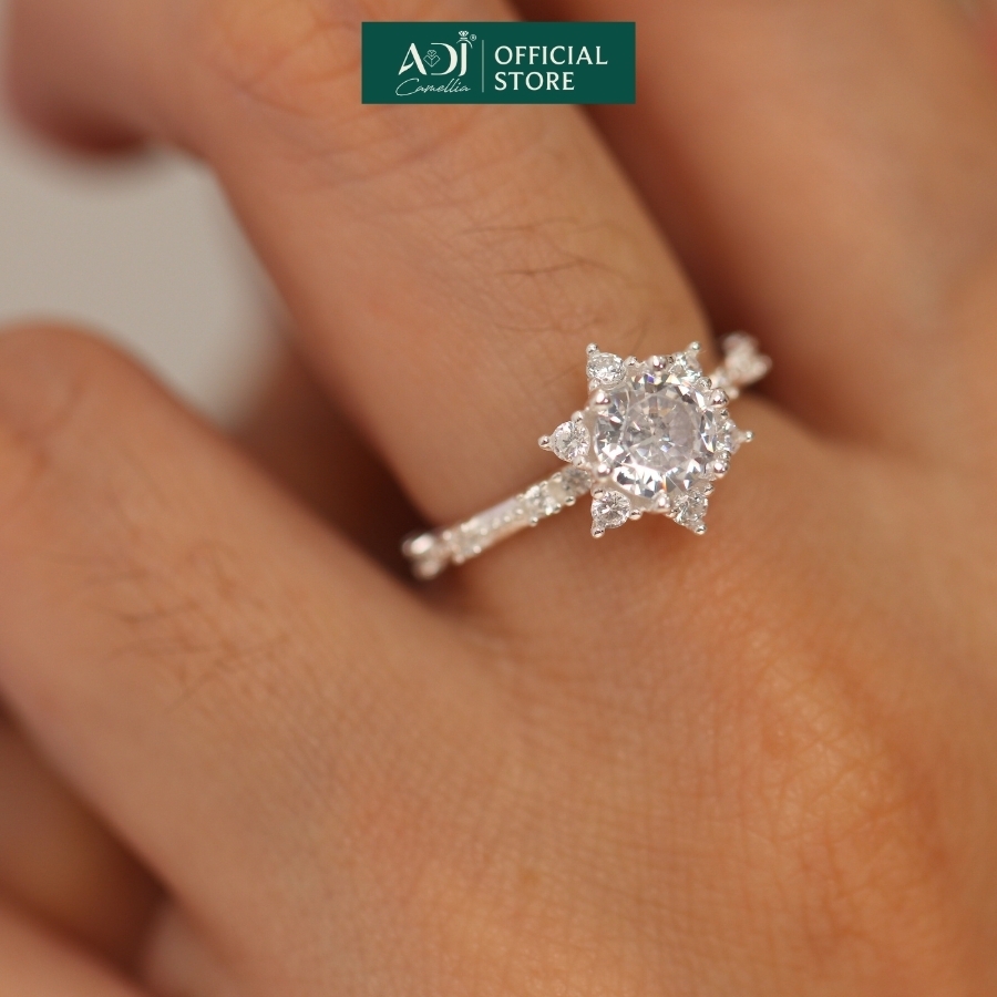 Đánh giá Nhẫn Bạc Nữ ADJ 6 Cánh Nhọn Viên Chủ To Viền Nạm Đá Lấp Lánh