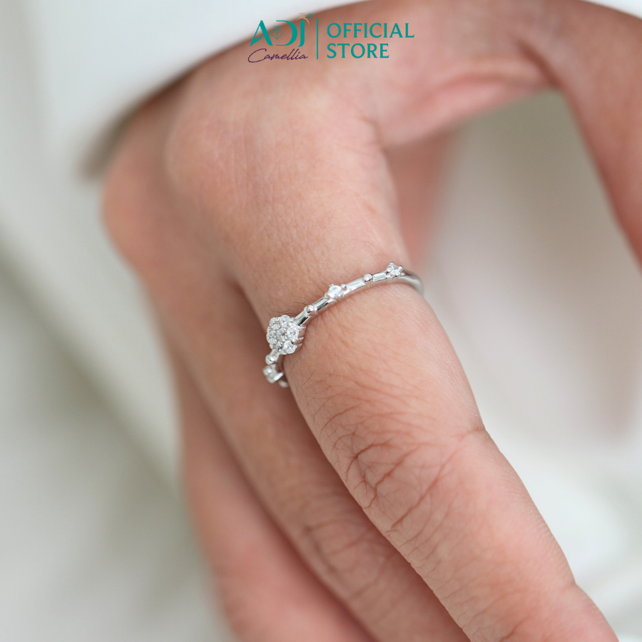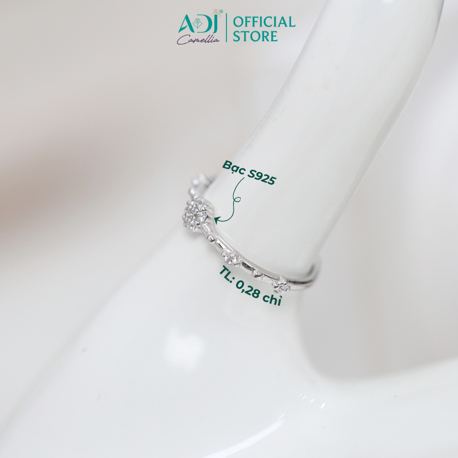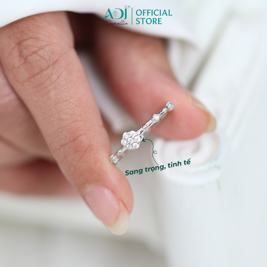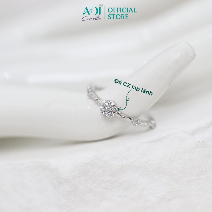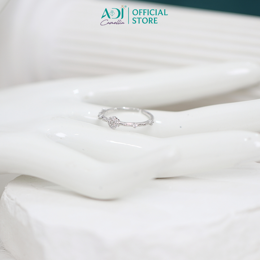 Nhẫn Bạc Nữ ADJ Freesize Hoa 5 Cánh Tròn Đính Đá Nữ Tính SN118210AD